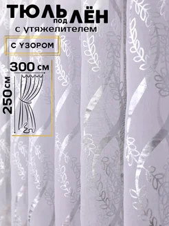 Тюль 300х240 готовая на ленте под лен в гостиную и спальню