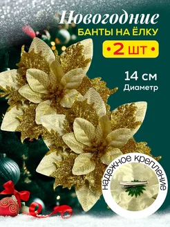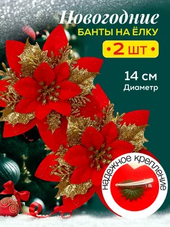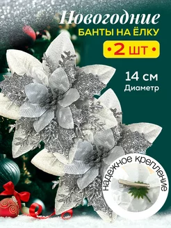 Новогодние елочные игрушки, украшения цветы набор 2 штуки