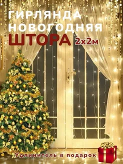 Гирлянда интерьерная новогодняя штора на окно 2х2