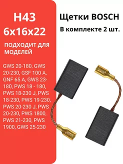 Щетки угольные BOSCH Н43, 6х16х22 мм. щётки Бош H-43. 2шт
