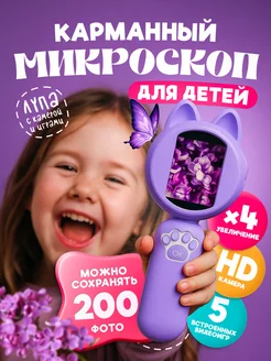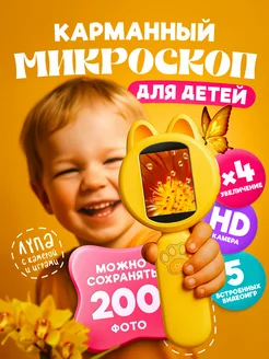 Микроскоп детский карманный с камерой и подсветкой лупа