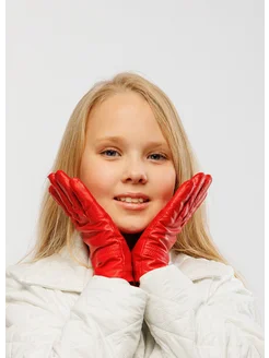 Детские кожаные перчатки утепленные для мальчика и девочки