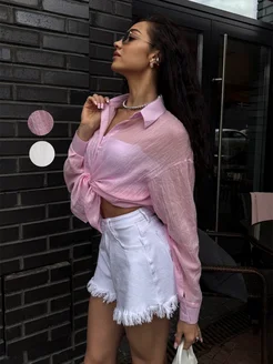 Рубашка летняя розовая хлопок лён