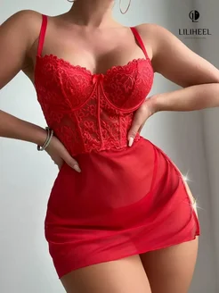 Новогодняя ночная сорочка пеньюар на лямках короткая