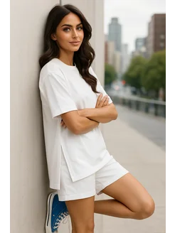 Спортивный костюм летний с шортами и футболкой оверсайз