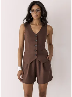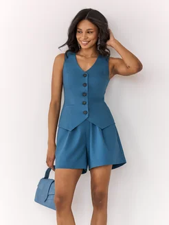 Костюм льняной летний с шортами и жилеткой