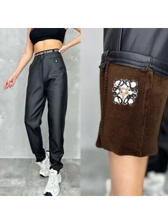 Кожаные брюки на меховой
