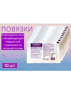 Повязка пластырь послеоперационная 5х7,5см, 10 шт