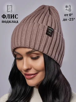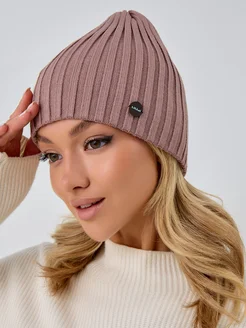 Шапка тонкая Бини - тыковка вязаная с отворотом