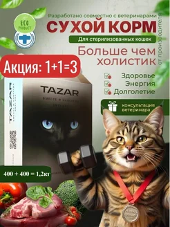Сухой корм для стерилизованных кошек ТАЗАР холистик 1+1=3