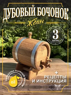 Жбан дубовый с краном на подставке, 3 литра
