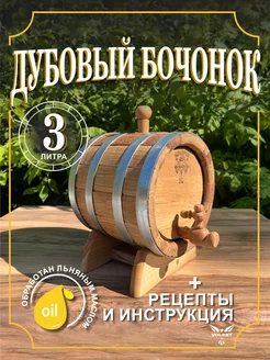 Бочка дубовая с краном на подставке, 3 литра