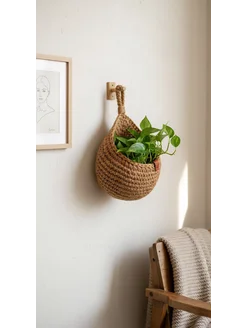 Корзинка подвесная из джута ручной работы