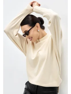 Джемпер тонкий оверсайз на осень молочный