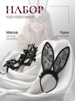 Карнавальный набор Ободок Ушки Ажурнеая маска
