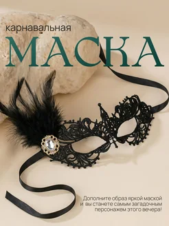 Маска карнавальная ажурная с пером на вечеринку новый год