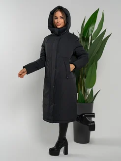Теплый длинный пуховик