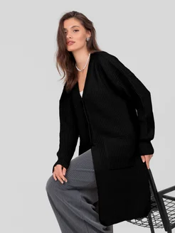 Кардиган вязаный удлиненный оверсайз теплый на пуговицах