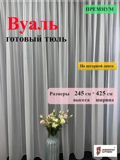 Готовый тюль вуаль однотонный белый стандарт 425см