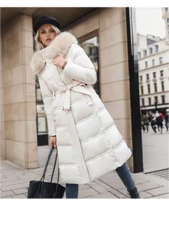 Пуховик зимний длинный с мехом и капюшоном
