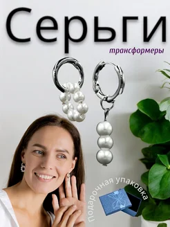 Серьги кольца конго трансформеры с жемчугом в подарок
