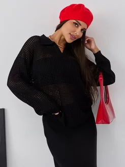 Осенняя-зимняя оверсайз свитер с горлом укороченный