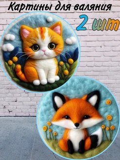 Набор для валяния картины из шерсти Котёнок и Лисёнок