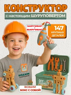 Конструктор с шуруповертом 2в1 набор инструментов детский