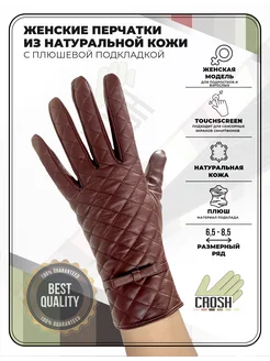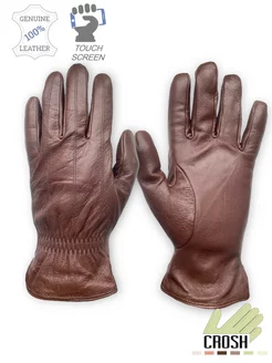 Перчатки кожаные "CROSH" SMW-103-ts_BROWN(подклад из шерсти)