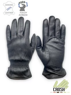 Перчатки кожаные "CROSH" SMS-103-ts_BLACK (подклад из шёлка)