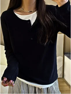 Топ с длинным рукавом лонгслив на пуговицах двойной y2k