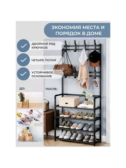 Обувница -напольная вешалка с крючками 2 в 1 60x154x30 см
