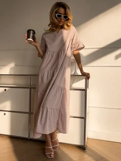 Платье летнее в полоску с коротким рукавом