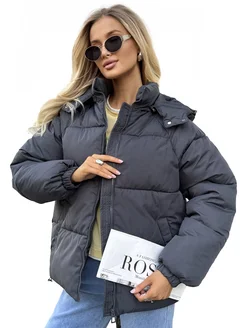 Куртка зимняя оверсайз короткая с капюшоном