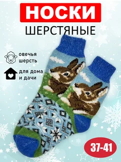 Носки теплые шерстяные домашние вязаные новогодние зайцы
