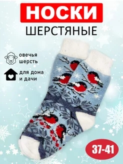 Носки теплые шерстяные домашние вязаные новогодние снегири