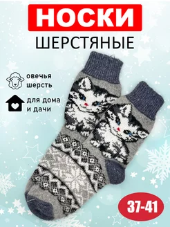 Носки теплые шерстяные домашние вязаные новогодние котята