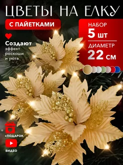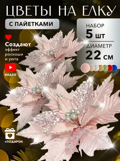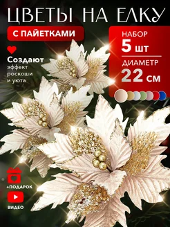 Новогодние украшения на елку цветы 5 шт