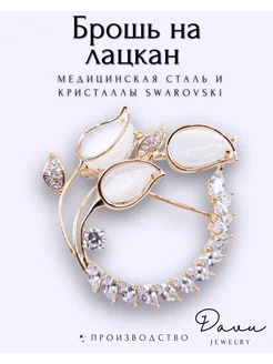 Брошь на лацкан позолоченная с кристаллами Swarovski