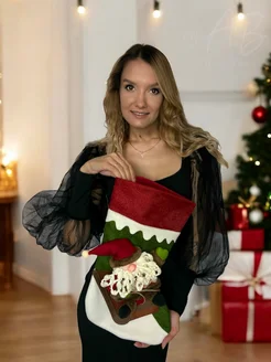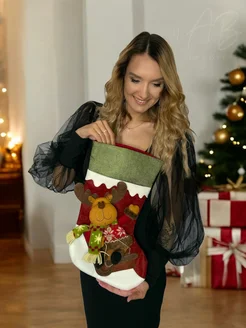 Большой новогодний носок для подарков на камин