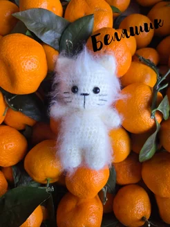 Мягкая игрушка вязаный котик Беляшик ручной работы