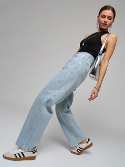 Джинсы прямые с высокой посадкой и карманами, хлопок