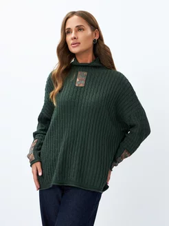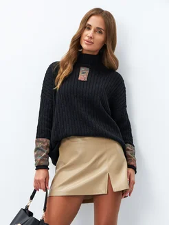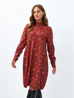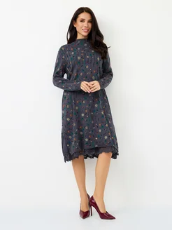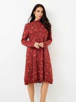 Платье трикотажное с ажуром хлопковое с принтом оверсайз