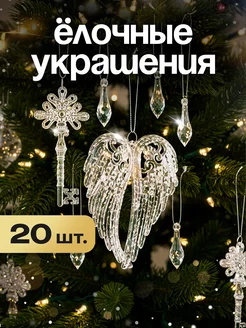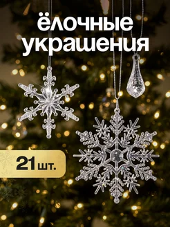 Набор новогодних елочных игрушек снежинки и кулоны 21 штука