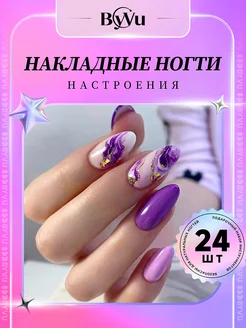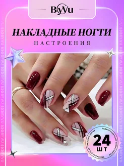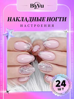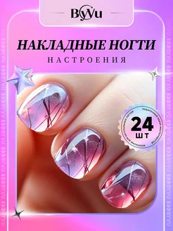Накладные ногти с дизайном и клеем короткие