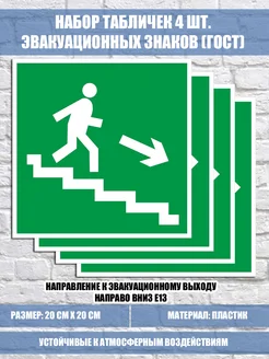 Набор (4 шт.) Направ. к эвакуац. выходу направо вниз E13