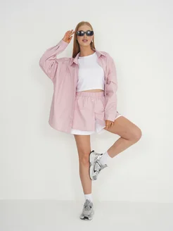 Костюм оверсайз рубашка и юбка-шорты хлопок