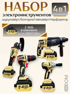 Набор инструментов аккумуляторный шуруповерт гайковерт 4 в 1