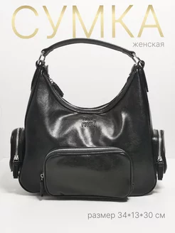 Сумка стеганая черная на цепочке с бриллиантовым шаром