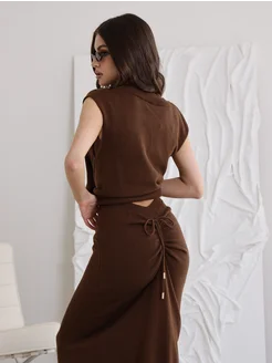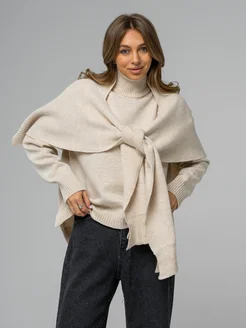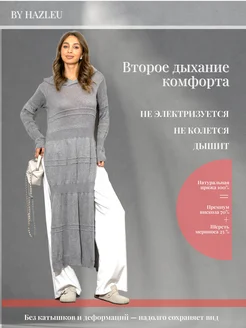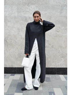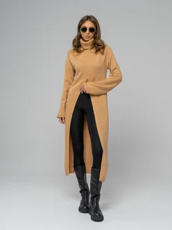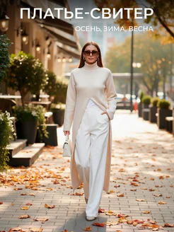 Платье свитер вязаное с разрезом с горлом теплое оверсайз